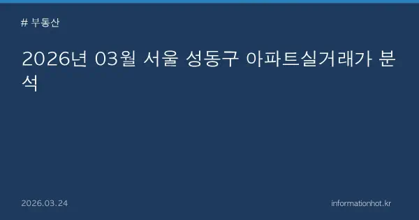 서울 성동구 부동산 시장 개요 # 2026년 03월, 서울 성동구의 아파트 시장은 총 24건의 거래가 이루어졌습니다. 이 지역은 다양한 생활 인프라와 교통 편의성 덕분에 많은 수요가 지속적으로 이어지고 있습니다. 특히 성동구는 현대적인 개발과 함께 전통적인 주거 공간이 공존하여 투자자와 거주자 모두에게 매력적인 장소로 자리 잡았습니다.